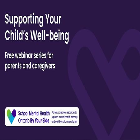 Supporting Your Child’s Well-Being, a free, four-part webinar series created with parents/caregivers, for parents/caregivers Parents and caregivers across Ontario shared their top mental health and substance use health questions - and we listened. Each session will dive into important mental health and substance use health topics identified by families in Ontario - guided by subject matter experts who offer practical, evidence-informed strategies. The webinars will also include answers to questions that parents/caregivers can provide ahead of the webinar. Parents and caregivers can submit their questions here: https://smha.ca1.qualtrics.com/jfe/form/SV_0UI4DFh0gY95I8e Submissions will close 10 days prior to each session. 4 webinars. Real conversations. Practical strategies. Series dates and topics: March 5 | 7 -8 p.m. - Conversations about balanced device use April 10 | 12 - 1 p.m. - Conversations about vaping May 7 | 7 - 8 p.m. - Conversations about body image. English language session with simultaneous French interpretation. June 5 | 12 - 1 p.m. - Conversations about anxiety For full details on speakers and topics: SMH-ON | By Your Side Free Webinars | Blog Can't make all 4 dates? No problem! Select one or more of the four sessions when you sign up. Audience: Parents and caregivers across Ontario We encourage all parents and caregivers to participate in this informative series. Together, we can support the well-being of our children and communities.