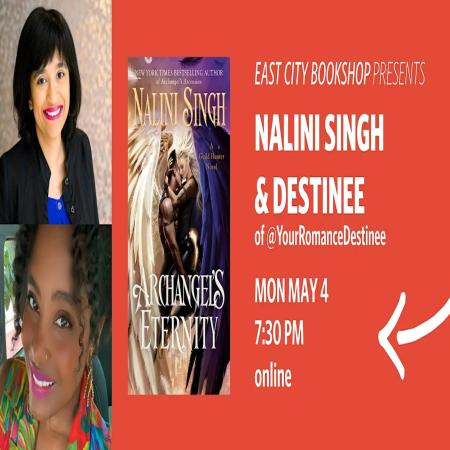 East City Bookshop welcomes back Nalini Singh to discuss her latest romance, Archangel's Eternity. East City Bookshop welcomes back Nalini Singh for another virtual event to discuss her latest novel, Archangel's Eternity, in conversation with ECB's Destinee of @YourRomanceDestinee. ABOUT ARCHANGEL'S ETERNITY Elena and Raphael return for the hauntingly poignant conclusion to New York Times bestselling author Nalini Singh’s genre-defining Guild Hunter series. A thousand years. It’s been a millennium since Elena’s fateful first meeting with Archangel Raphael. She has survived war and loss, experienced beauty and cruelty. But no matter what, she has always held on to her mortal heart, as she and Raphael have held on to each other. Passionate and vibrant, they’ve built a life that has stood the test of time, growing ever stronger with each turn of the sun. But change is coming—of a magnitude they could have never imagined—and it will forever alter the trajectory of their existence. Even as they grapple with the cataclysmic shift in their personal lives, the Cadre of Ten, which has maintained a hard-won peace for centuries, begins to simmer with dangerous fault lines. The specter of madness looms in one archangel, the promise of war burns between two others, and in darkness far from mortal and immortal eyes stirs an ancient, slumbering power. Suddenly, the future is terrifyingly uncertain . . . at the very moment that Elena and her archangel need to protect a treasure infinitely more precious than eternity. New York Times bestselling author Nalini Singh is passionate about writing. Though she’s traveled as far afield as the deserts of China, the temples of Japan, and the frozen landscapes of Antarctica, it is the journey of the imagination that fascinates her most. She’s beyond delighted to be able to follow her dream as a writer. She is the author of the Psy-Ch